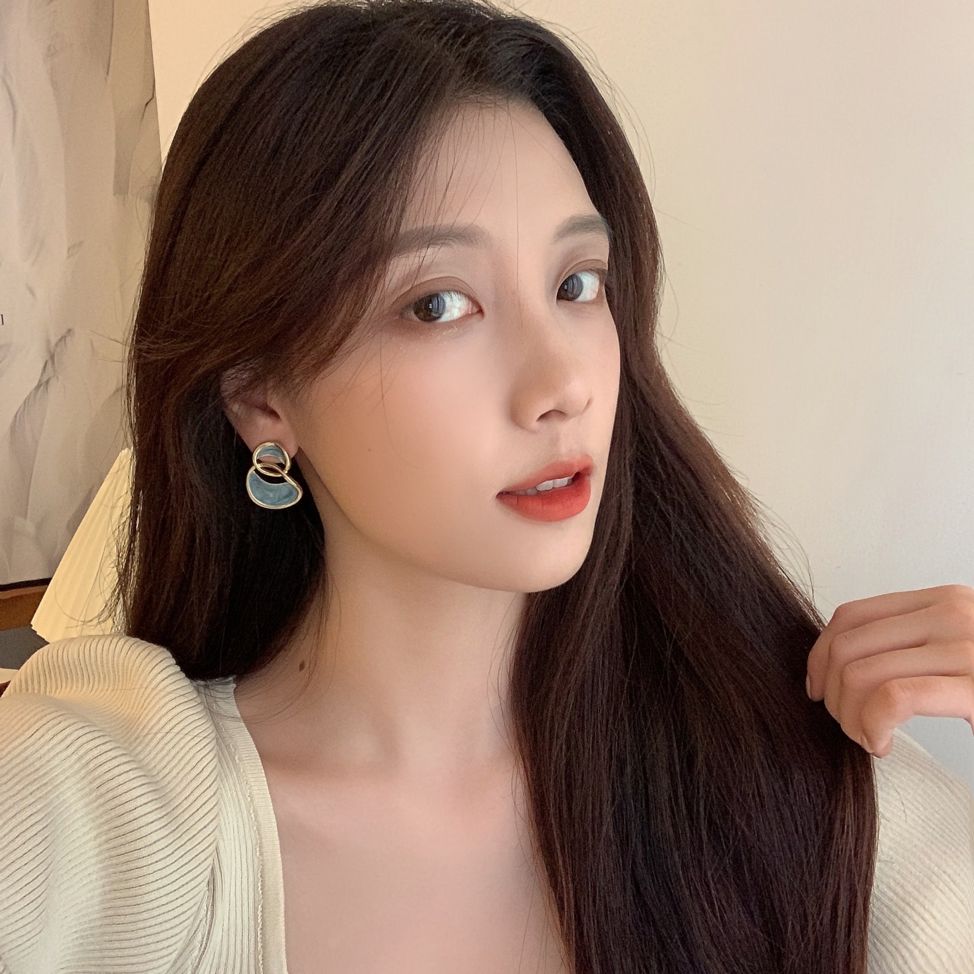 Posh Glimmer Minimalist Blue Resin Earrings for Women